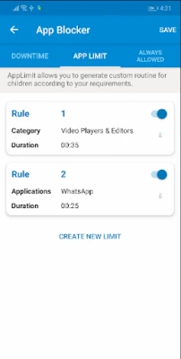 • Screen Time - Limit your child screen time using downtime and control phone usage by setting app or category usage duration daily as well as customized by weekdays.